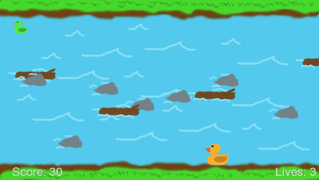 You are a rubber duck swimming down a river and you have to avoid obstacles.